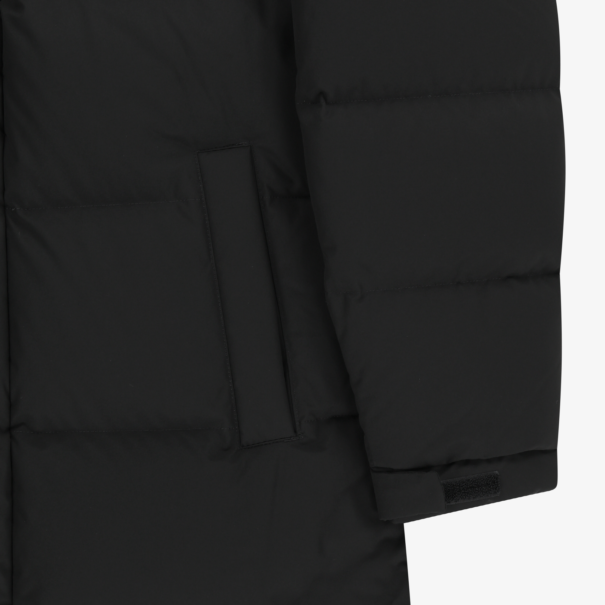 무릎 아래 기장의 롱 다운 코트로 스포티하고 편안하게 연출이 가능합니다.