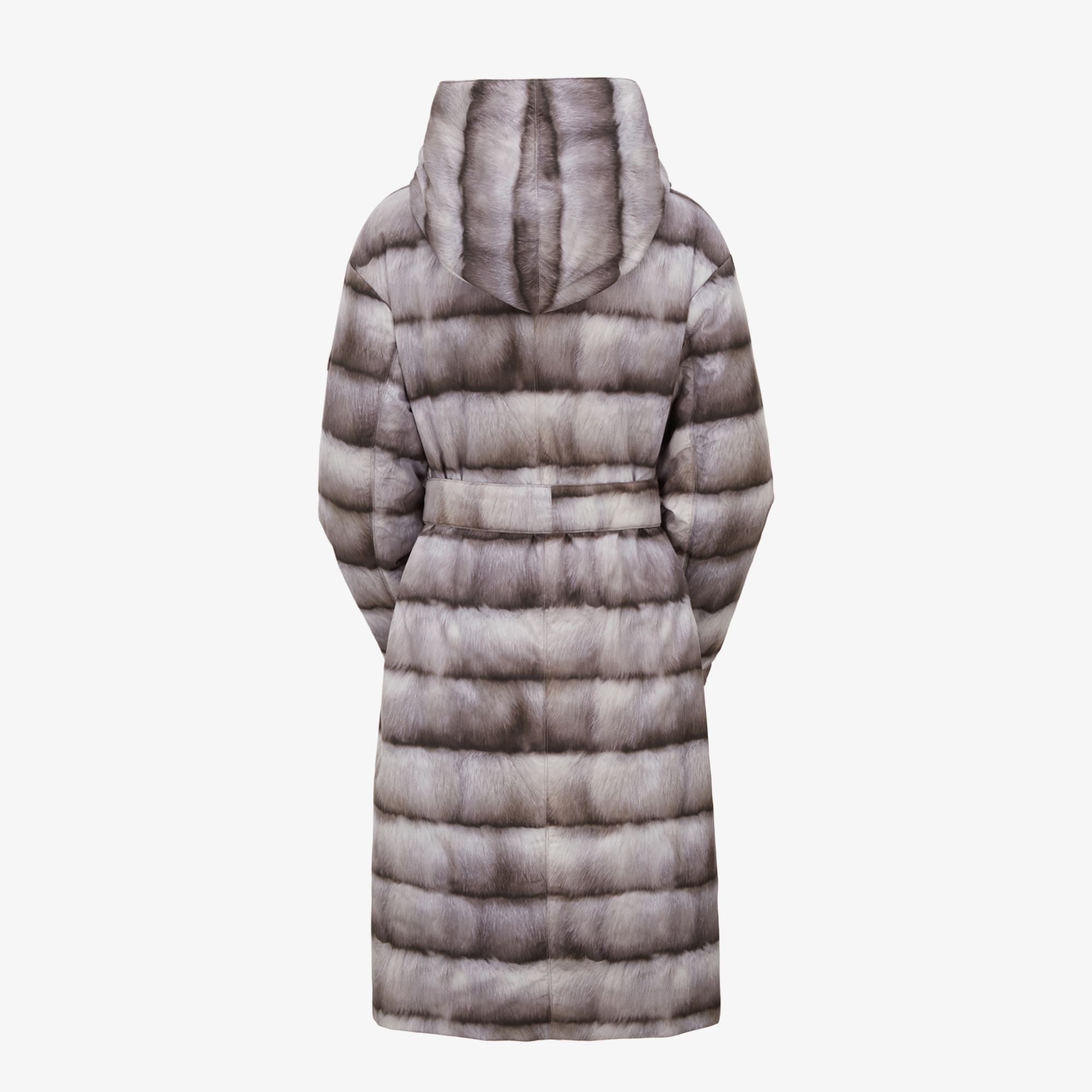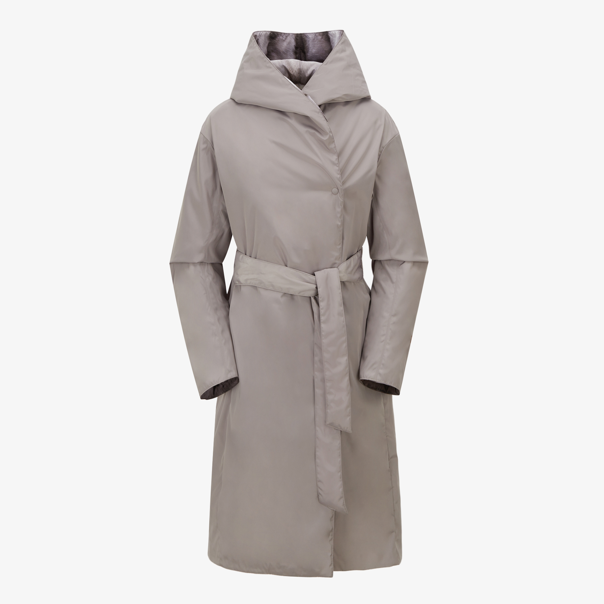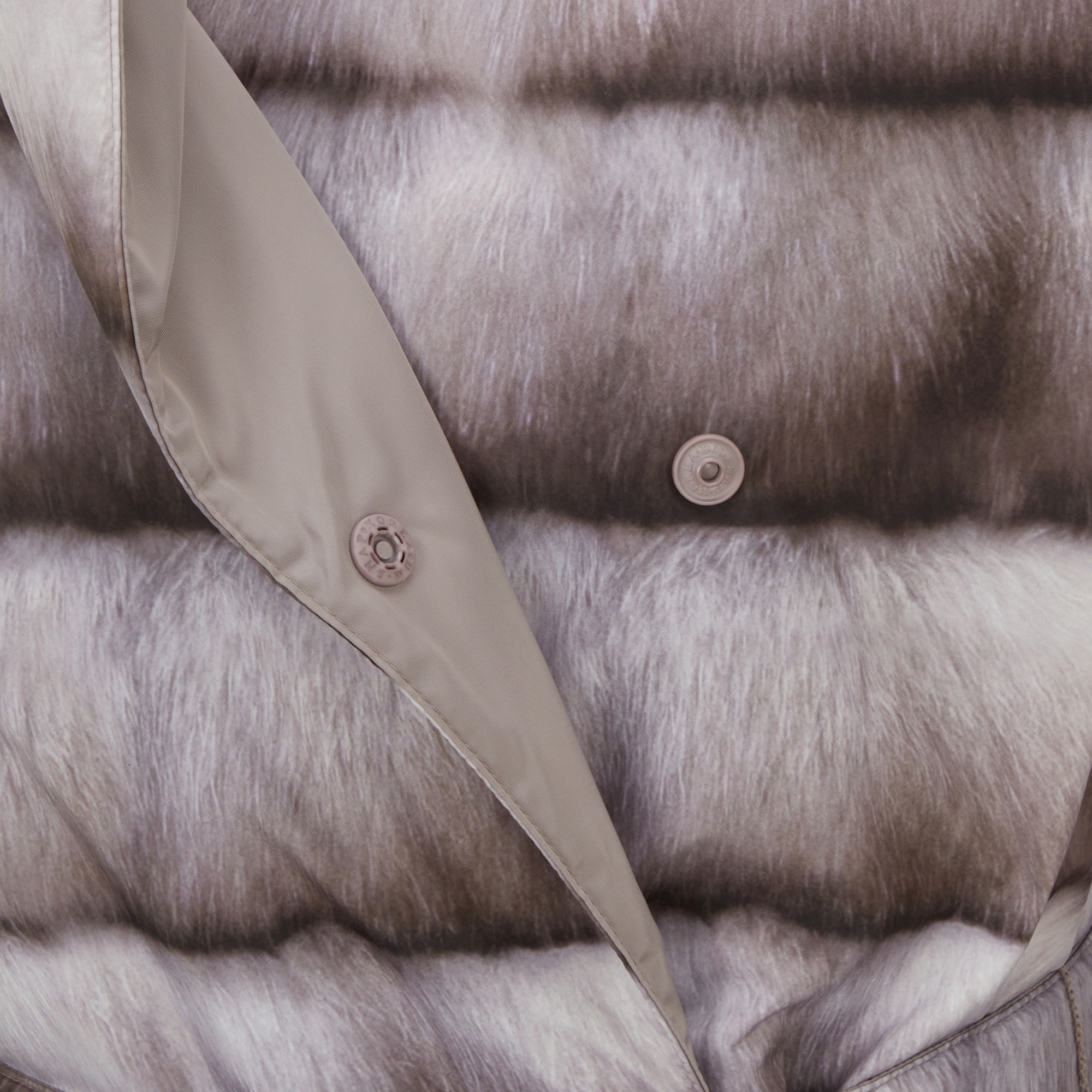 양면으로 착용 가능한 여성 리버시블 패딩 코트로 밍크 외관의 프린트면 착장 시 화려한 연출, 솔리드 면 착장 시 심플하고 고급스러운 연출이 가능합니다.