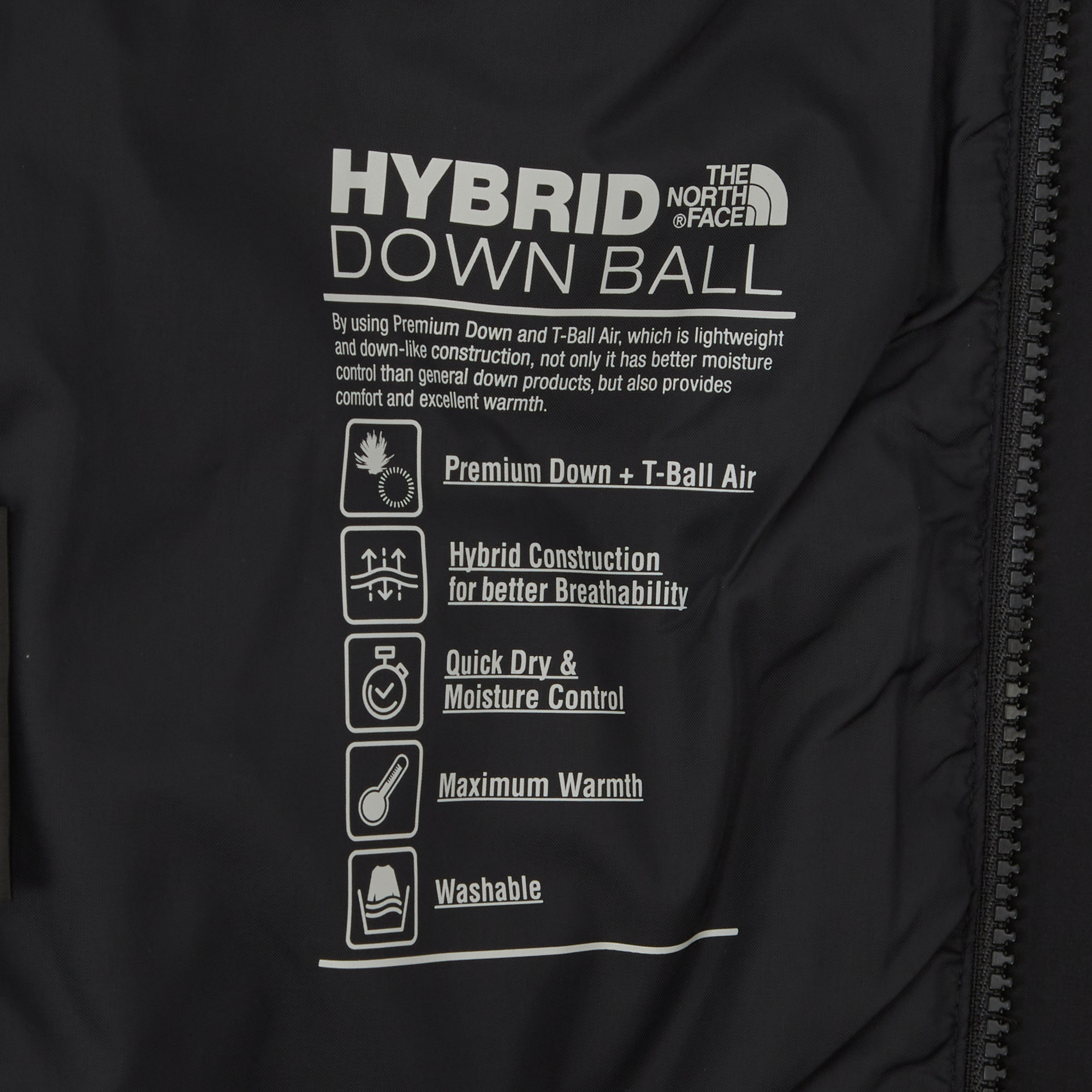 프리미엄 다운과 유사한 구조의 볼 패딩을 같이 사용한 하이브리드 충전재를 사용하여 통기성이 뛰어날 뿐만 아니라