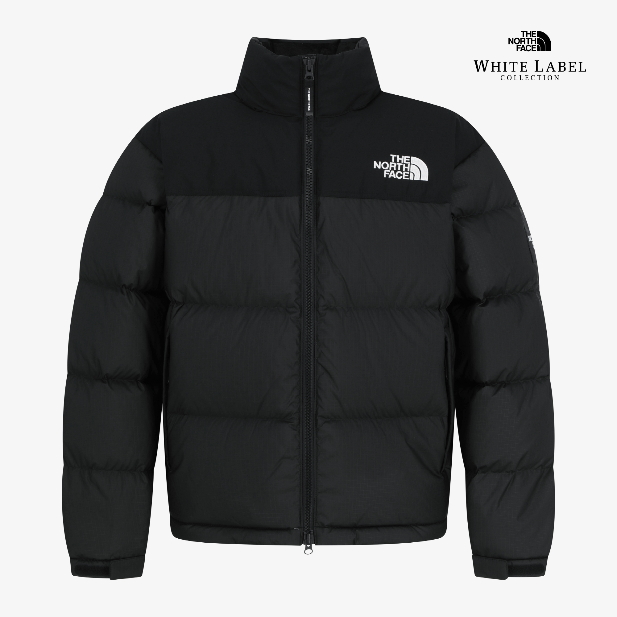 노스페이스 헤리티지인 상단 블록 배색이 포인트인 남녀공용 눕시 다운 자켓 스타일입니다.