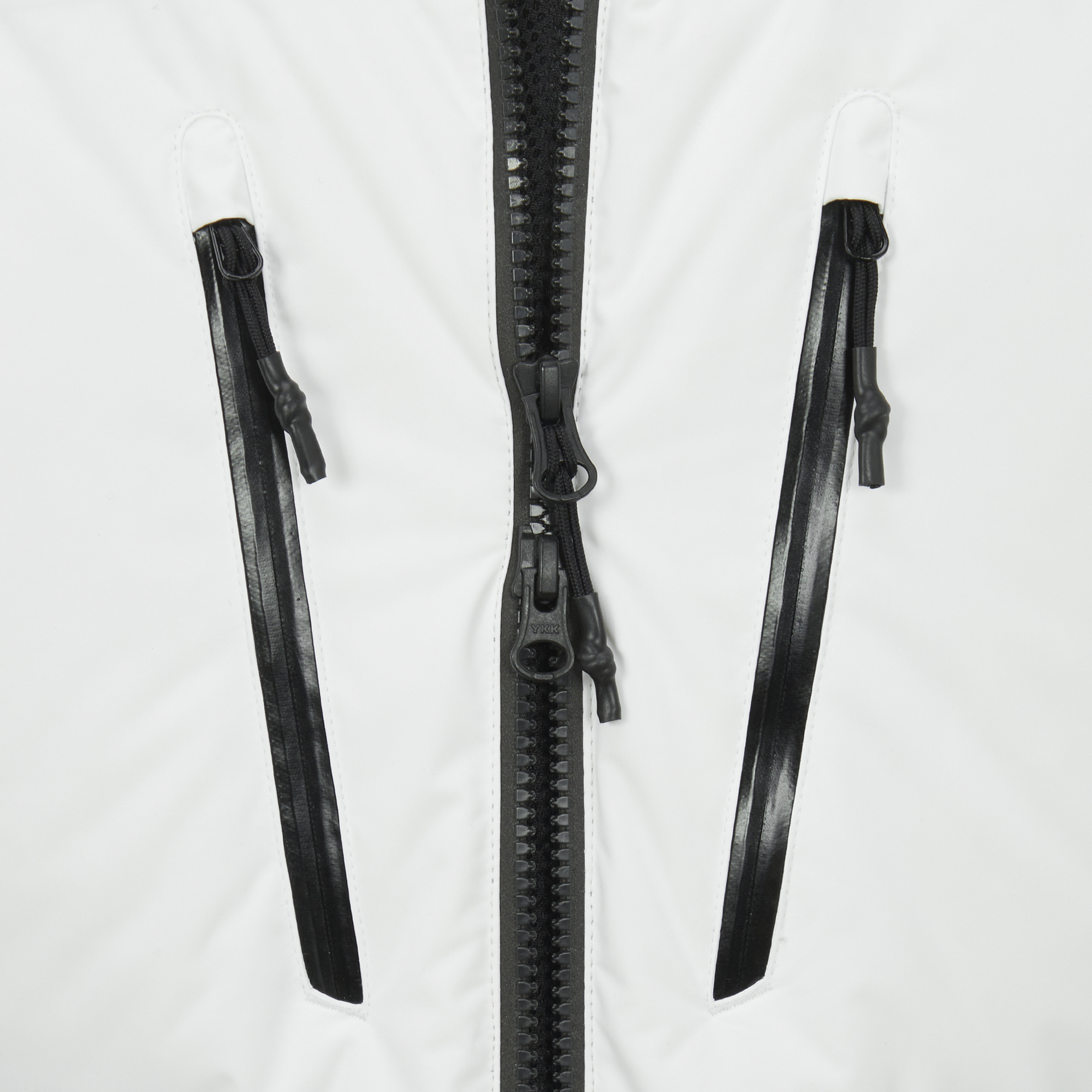 겉에 4개의 수납 포켓이 있고, 가슴에 메탈 느낌의 지퍼로 포인트를 주었습니다.