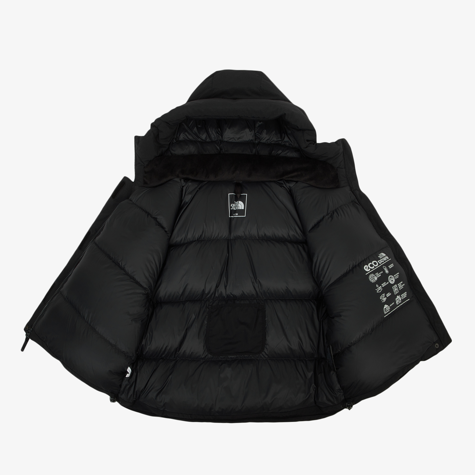 충전재 1(몸판,소매) : 우모(거위)솜털 80%, 깃터 20% 충전재 2(후드,옷깃): 폴리에스터 100%