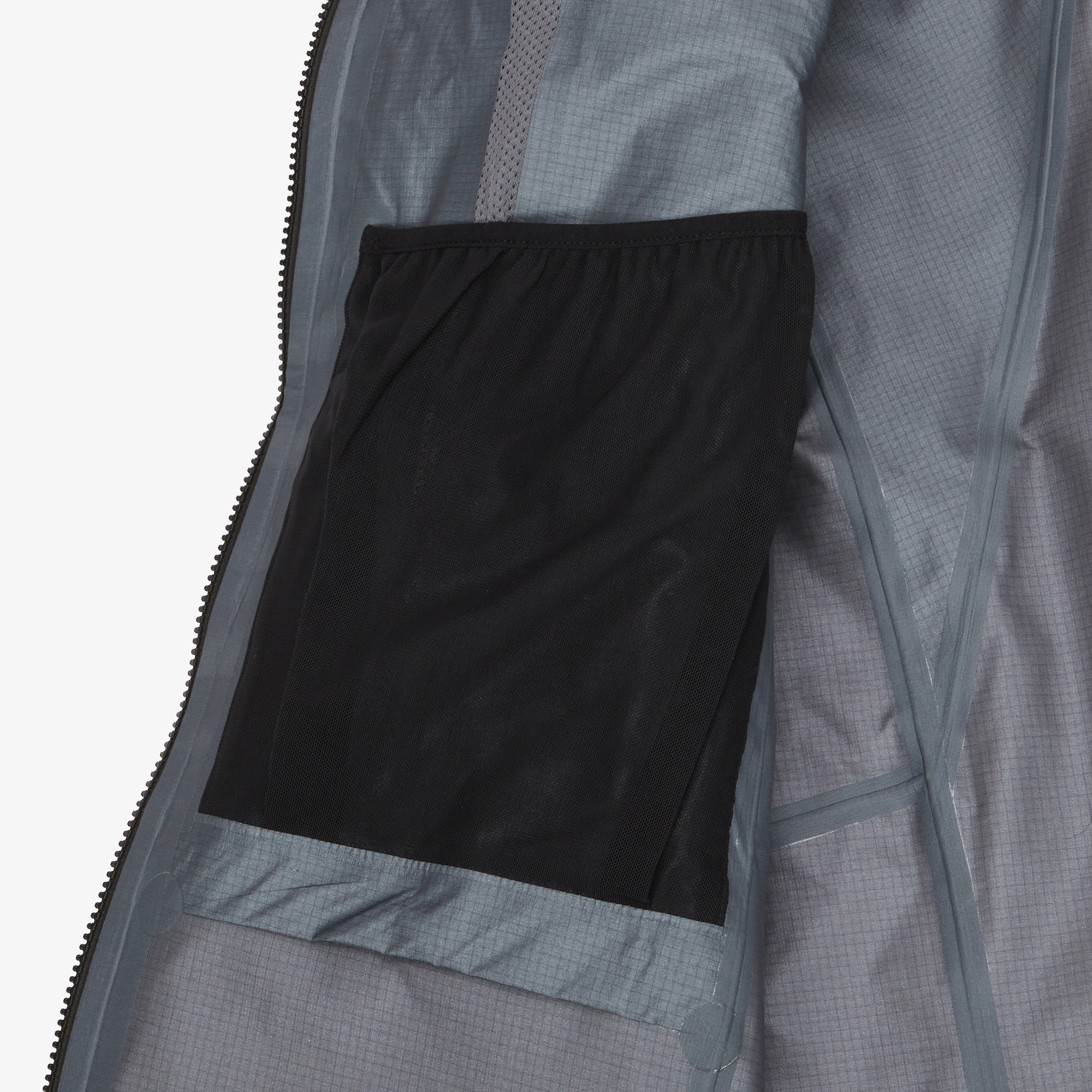 착용자 왼쪽 인포켓 GPS 프린트 적용 및 GPS와 같은 소형 기기를 넣을 수 있는 메쉬 히든포켓을 적용하였습니다.