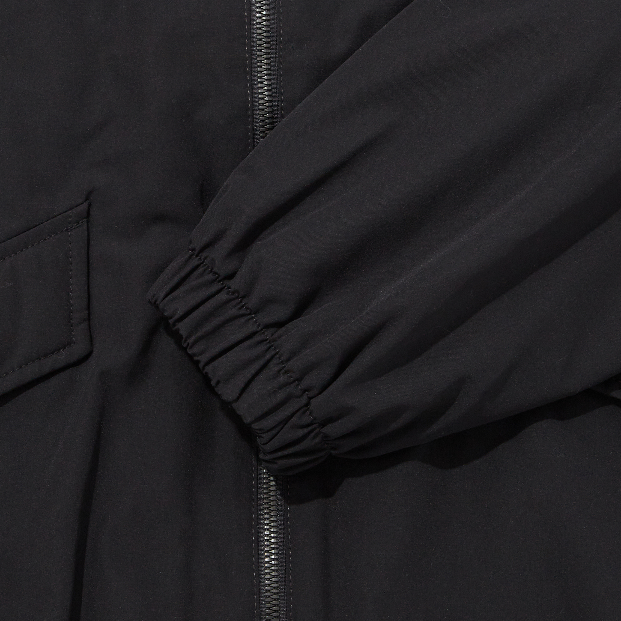 탄탄한 우븐 소재의 카라형 블루종 자켓으로 얇은 패딩 충전재를 사용하여 가을에서 초겨울까지 착용이 가능한 제품입니다.