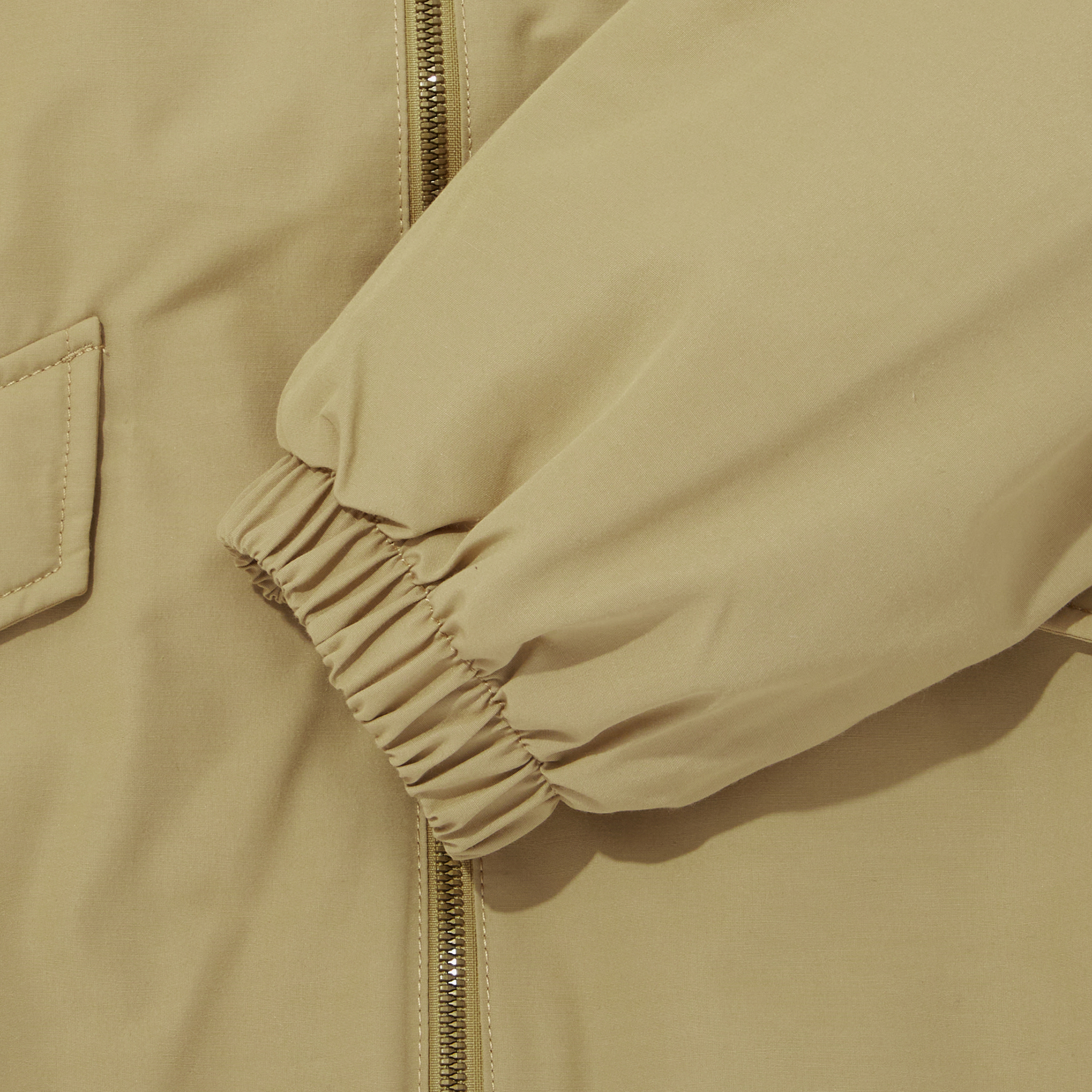 탄탄한 우븐 소재의 카라형 블루종 자켓으로 얇은 패딩 충전재를 사용하여 가을에서 초겨울까지 착용이 가능한 제품입니다.