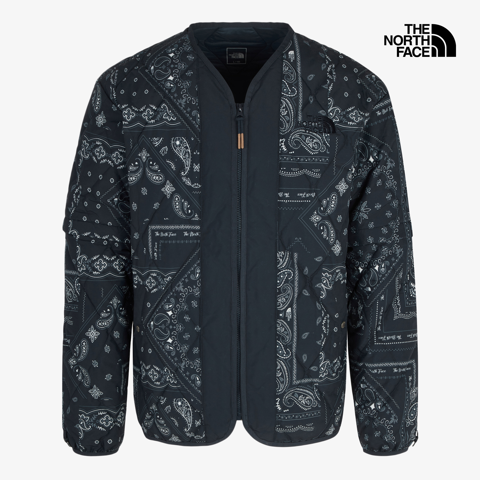 노스페이스의 로고를 더한 반다나 패턴이 전체적으로 적용되어, 스타일에 포인트를 더해줍니다.