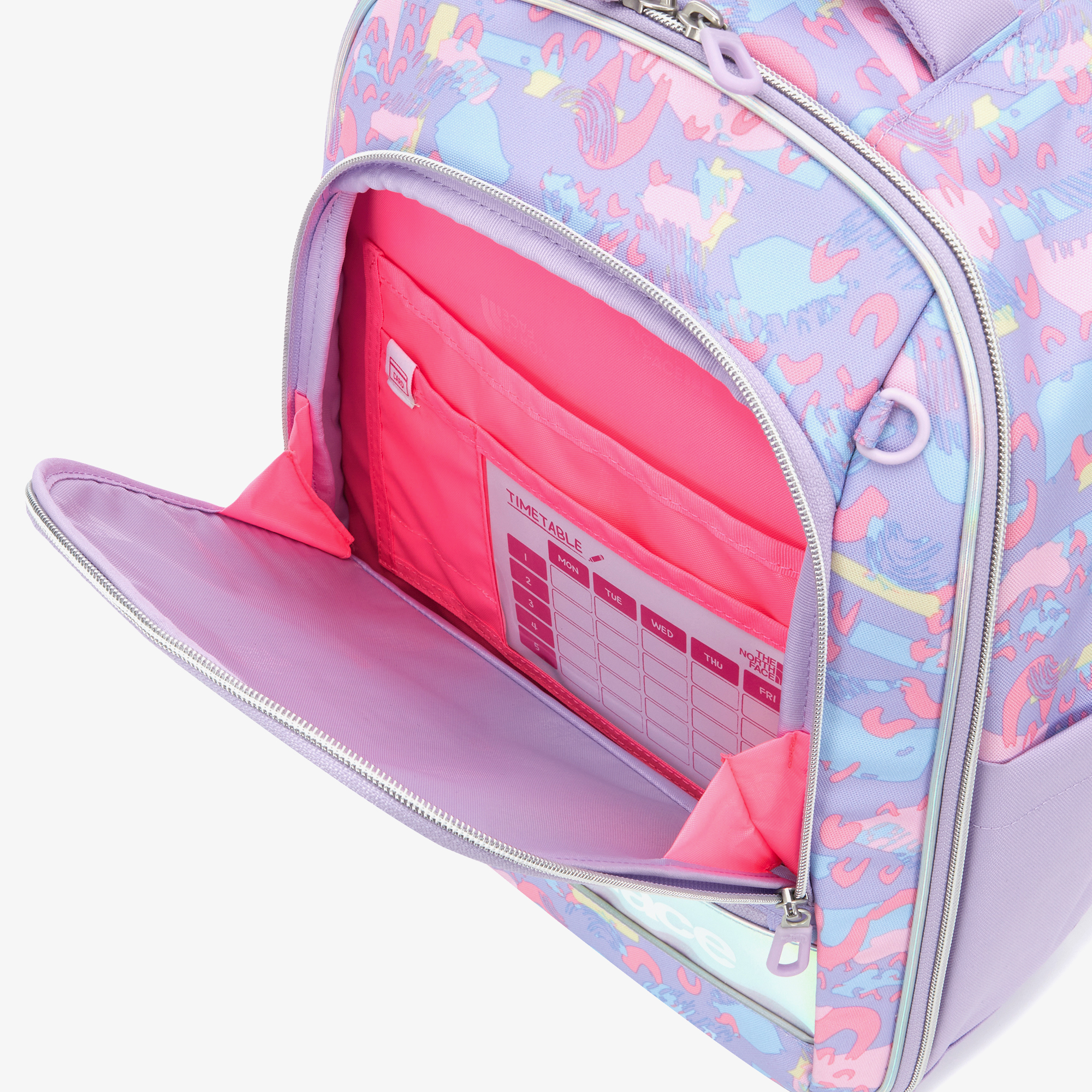 가방 내부에 이름표 라벨과 시간표가 내장되어 있습니다.