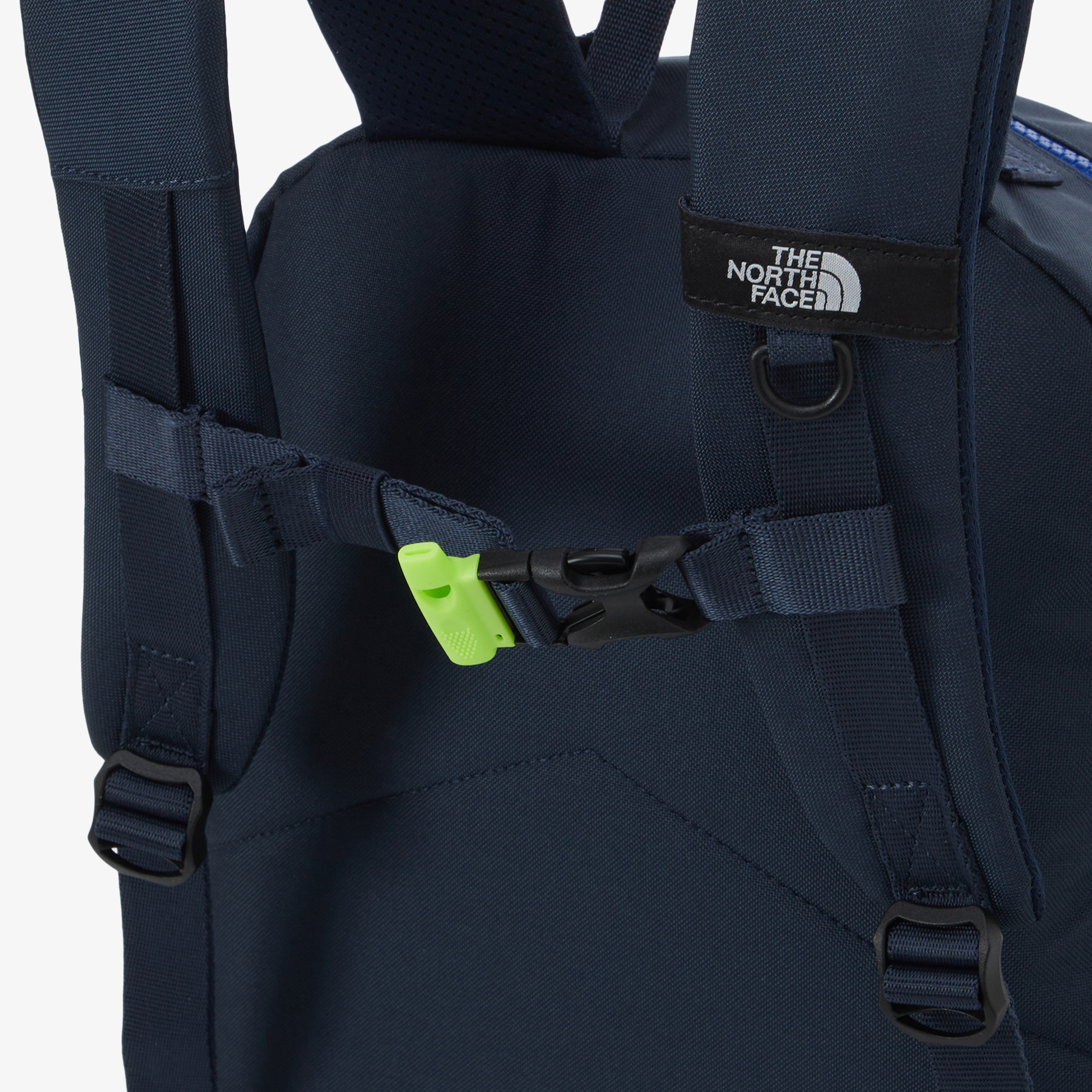 어깨멜빵을 고정할 수 있는 체스트버클이 있으며 호루라기를 적용하였습니다.