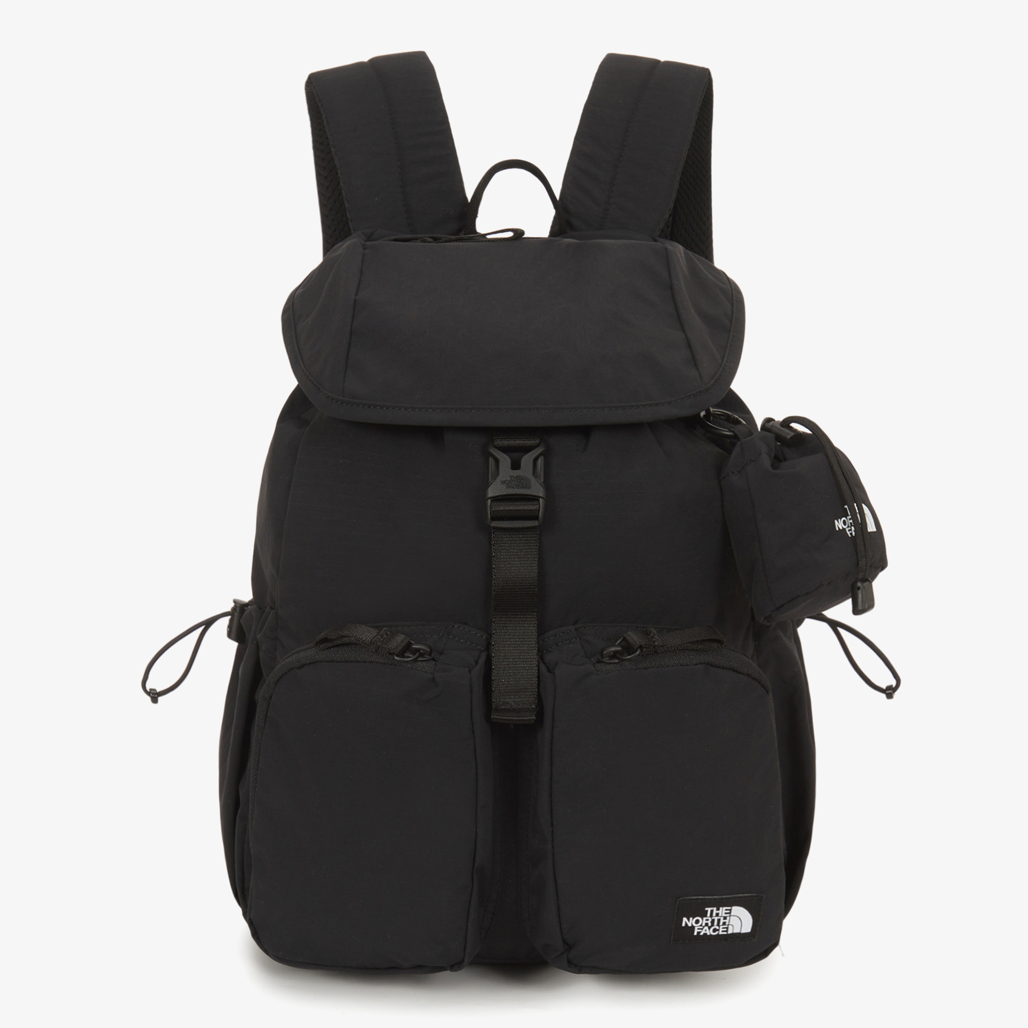 플랩 상단 지퍼 포켓, 전면 투포켓, 양쪽 조임 포켓으로 다양한 소지품을 분리·수납할 수 있습니다.