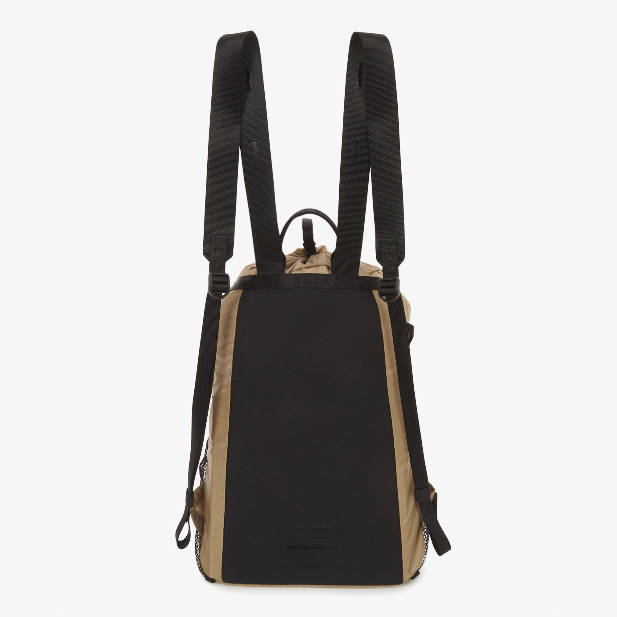 측면 웨빙 스트랩을 조여 가방 내부 수납품의 흔들림을 방지해 안정감을 높였습니다.
