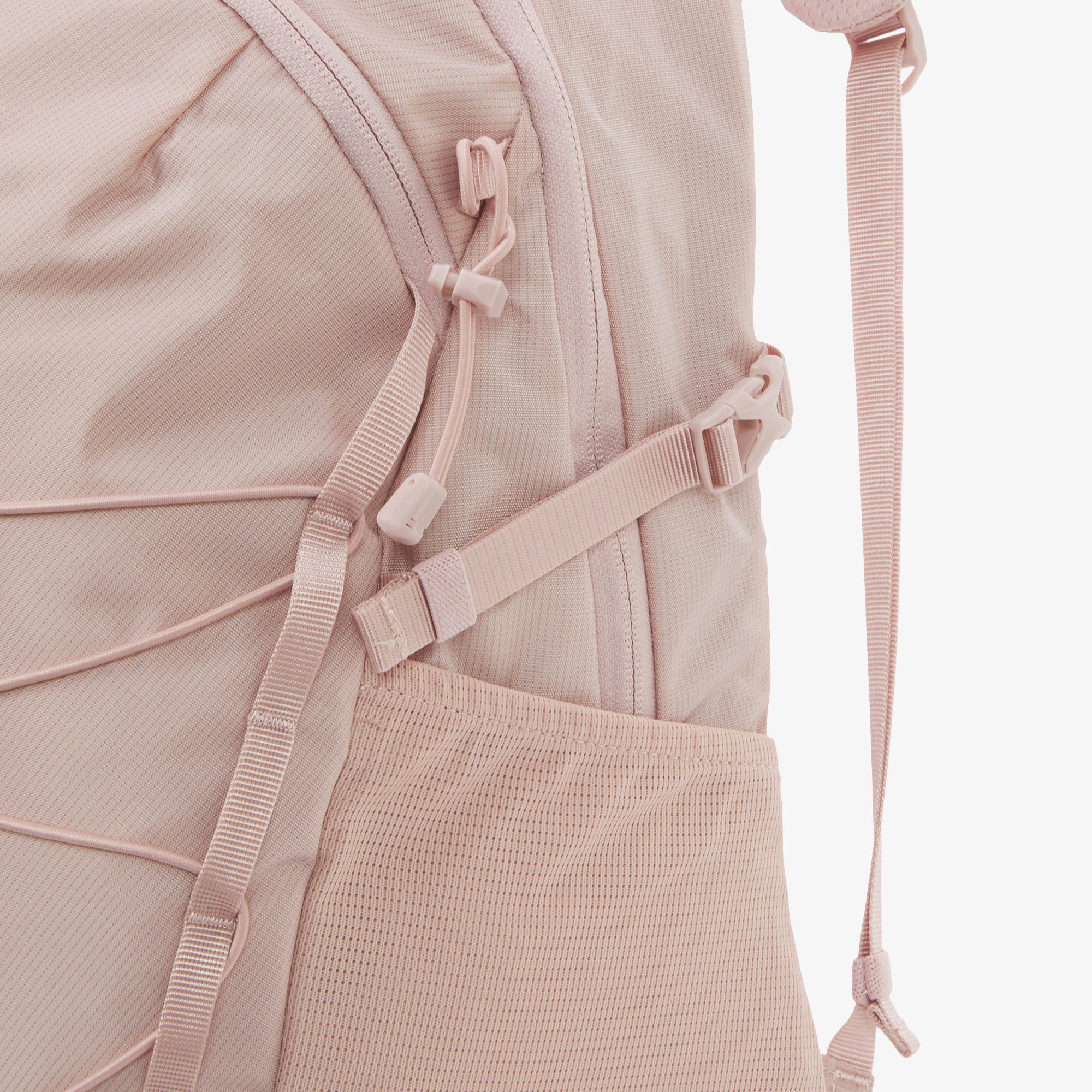 측면 웨빙 스트랩을 조여 내부 수납물의 흔들림을 방지해 안정감을 높혀주며, 메쉬 포켓은 물병이나 작은 소품을 수납 할 수 있습니다.