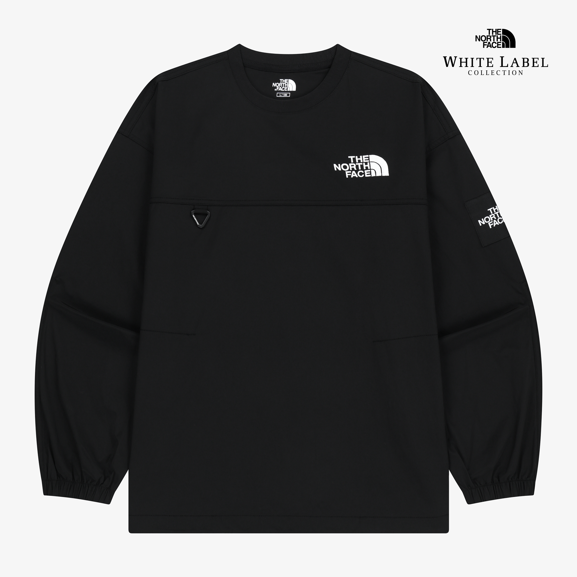 상단에 컬러 배색을 사용하여 포인트를 주었으며 소매에 작은 D-RING 고리가 있습니다.