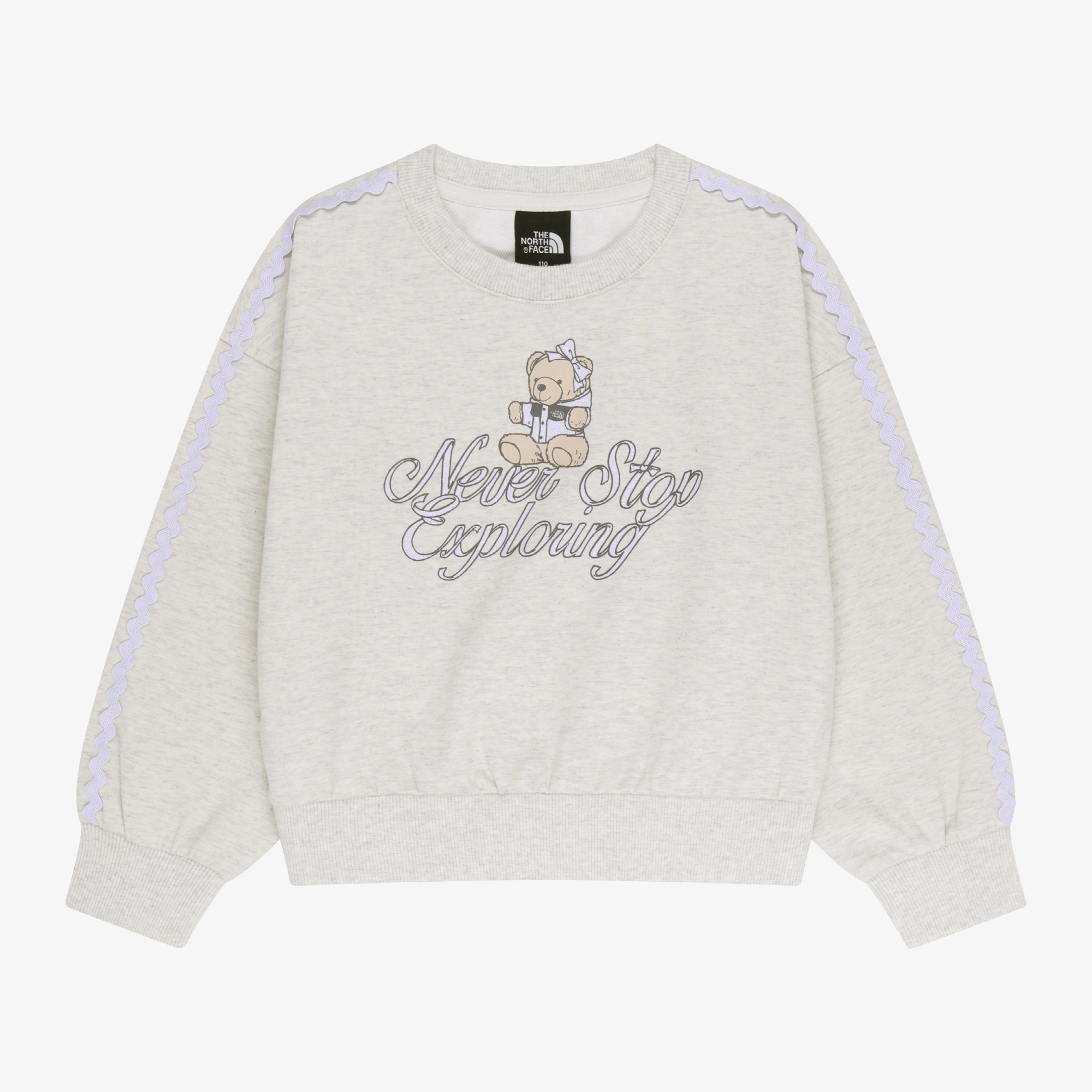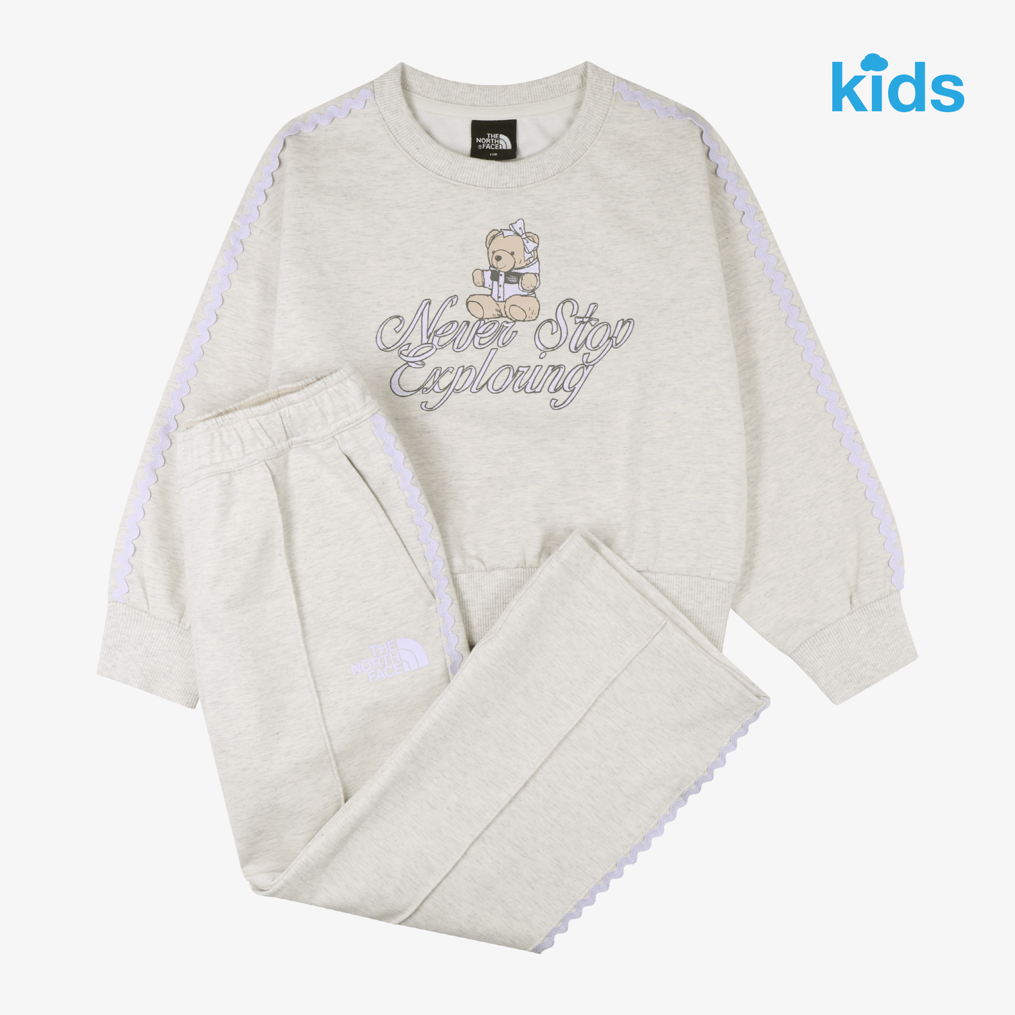 러블리한 눕시 베어 그래픽이 포인트인 맨투맨과 세미 부츠컷 핏 롱팬츠의 여아 전용 SET 입니다.