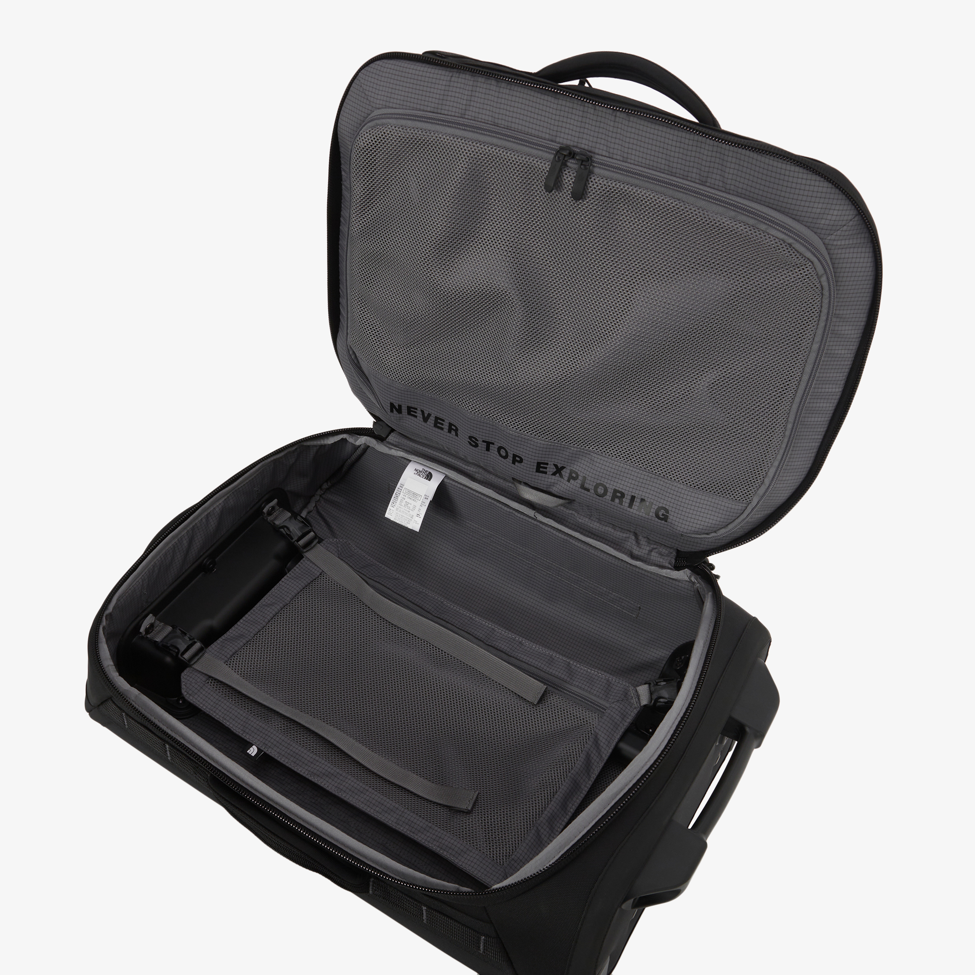 재활용 Base Camp 원단을 적용해 반복적인 이동과 거친 사용 환경에서도 형태와 내구성을 유지하며, 버튼식 텔레스코핑 핸들과 커스텀 몰드 휠로 안정적인 이동이 가능합니다.