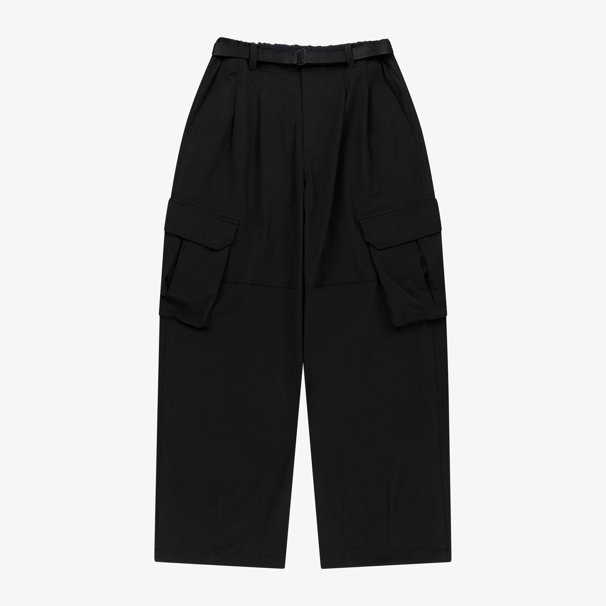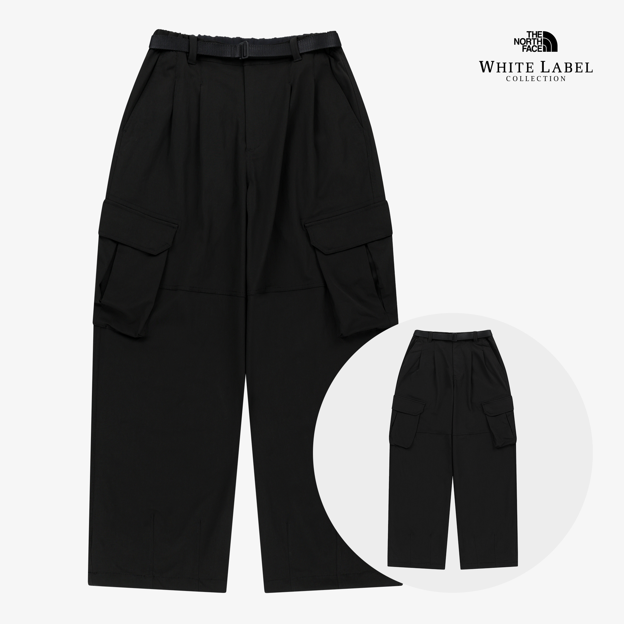 탈부착 웨빙벨트가 있고 밑단에 조임용 스트링, 스토퍼가 있어 실루엣 조절이 가능합니다.