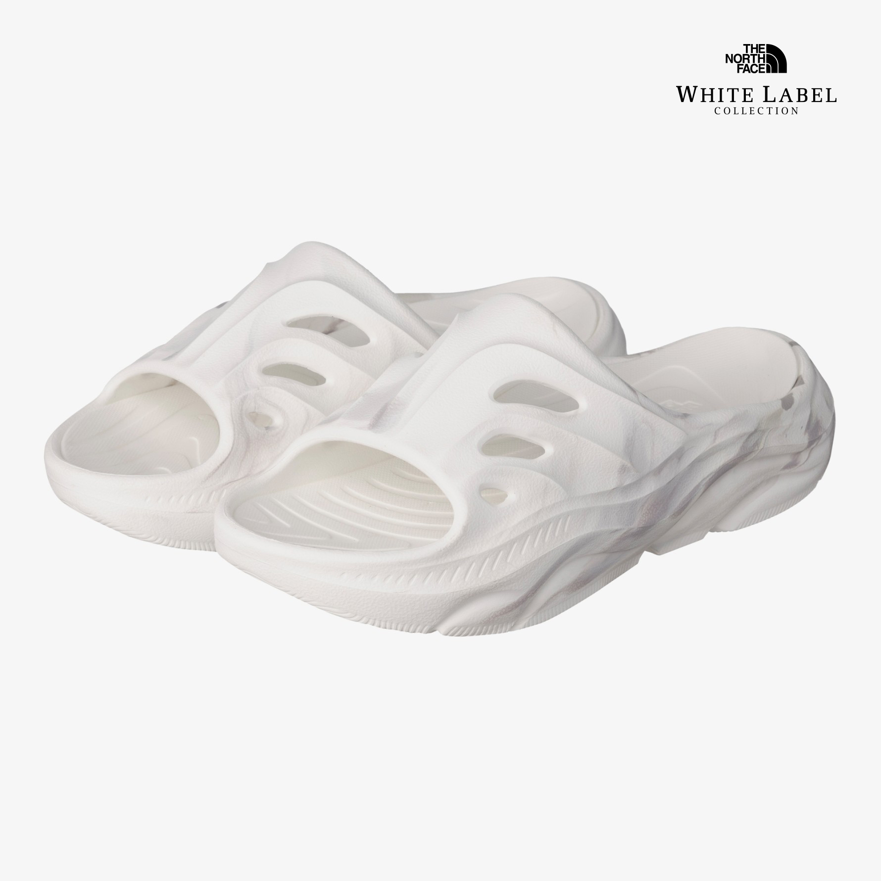 곡선형 모양의 갑피 디자인으로 피오르 협곡 형태에서 영감을 받은 디자인이며 노스페이스 로고인 돔을 모티브한 갑피의 홀이 통기성과 배수에 도움을 줍니다.