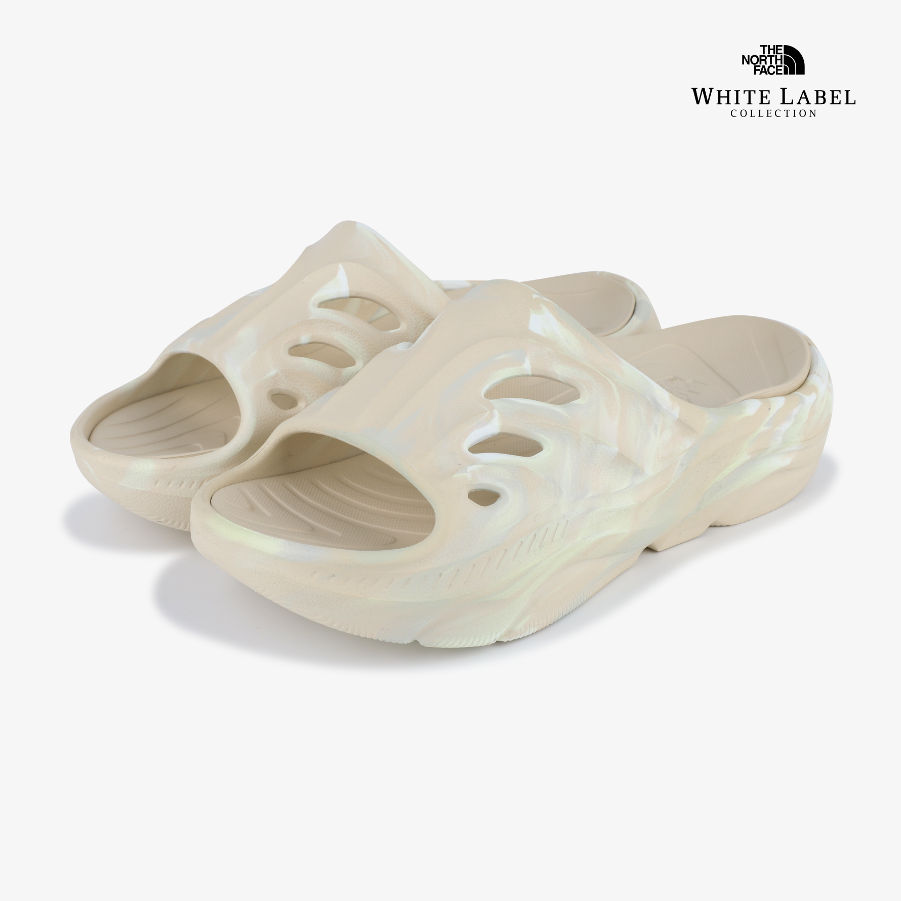 곡선형 모양의 갑피 디자인으로 피오르 협곡 형태에서 영감을 받은 디자인이며 노스페이스 로고인 돔을 모티브한 갑피의 홀이 통기성과 배수에 도움을 줍니다.
