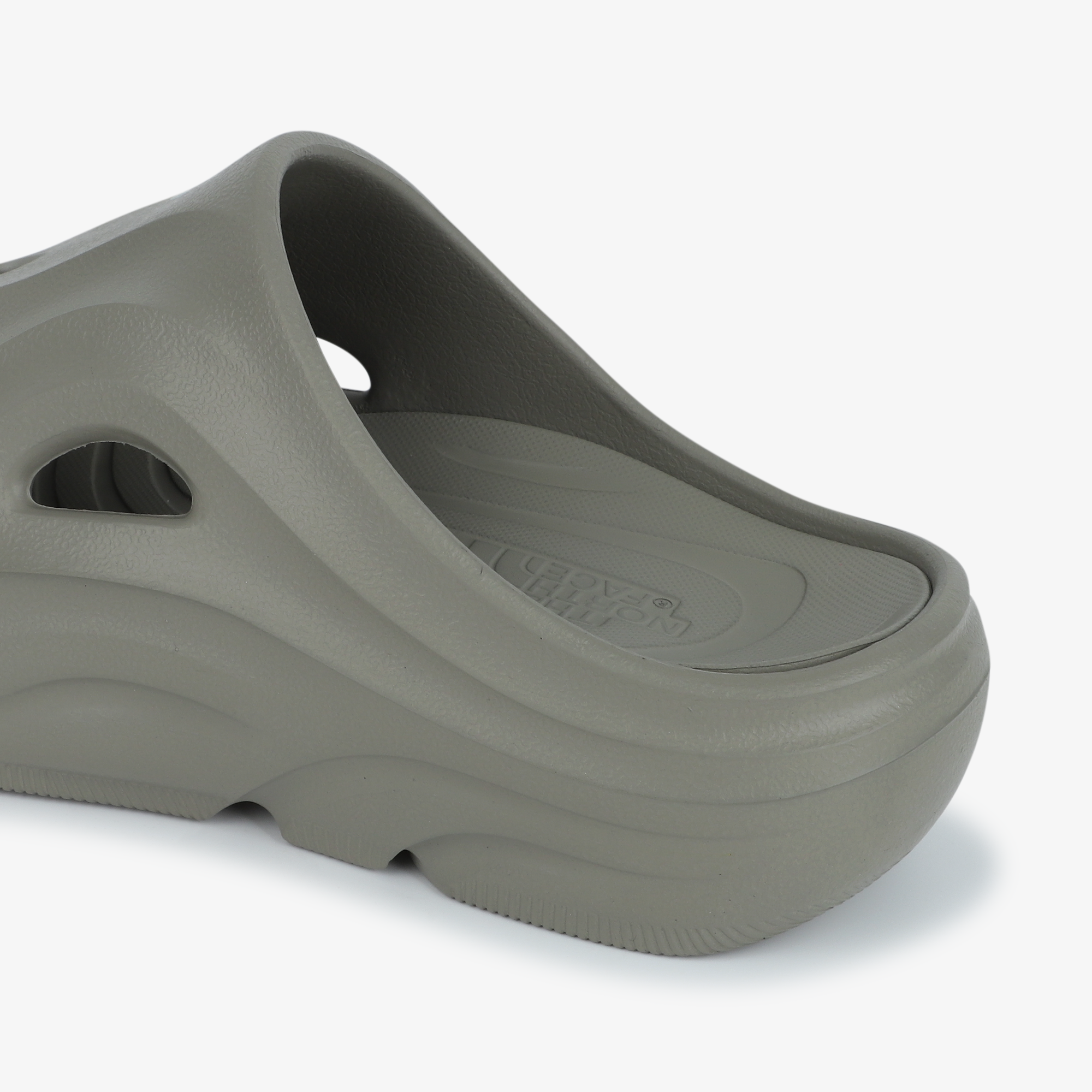 곡선형 모양의 갑피 디자인으로 피오르 협곡 형태에서 영감을 받은 디자인을 둥근 형태의 홀이 통기성과 배수를 도움을 줍니다.