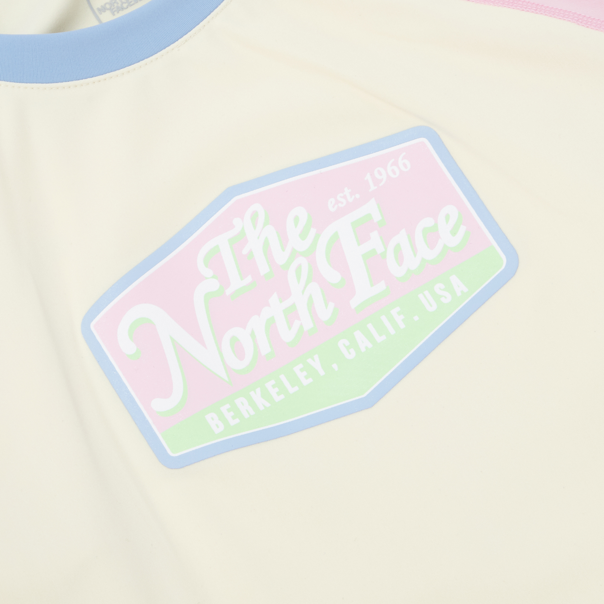 가슴 와펜형 그래픽으로 포인트를 준 컬러블럭형 라그란 래쉬가드 티셔츠입니다.
