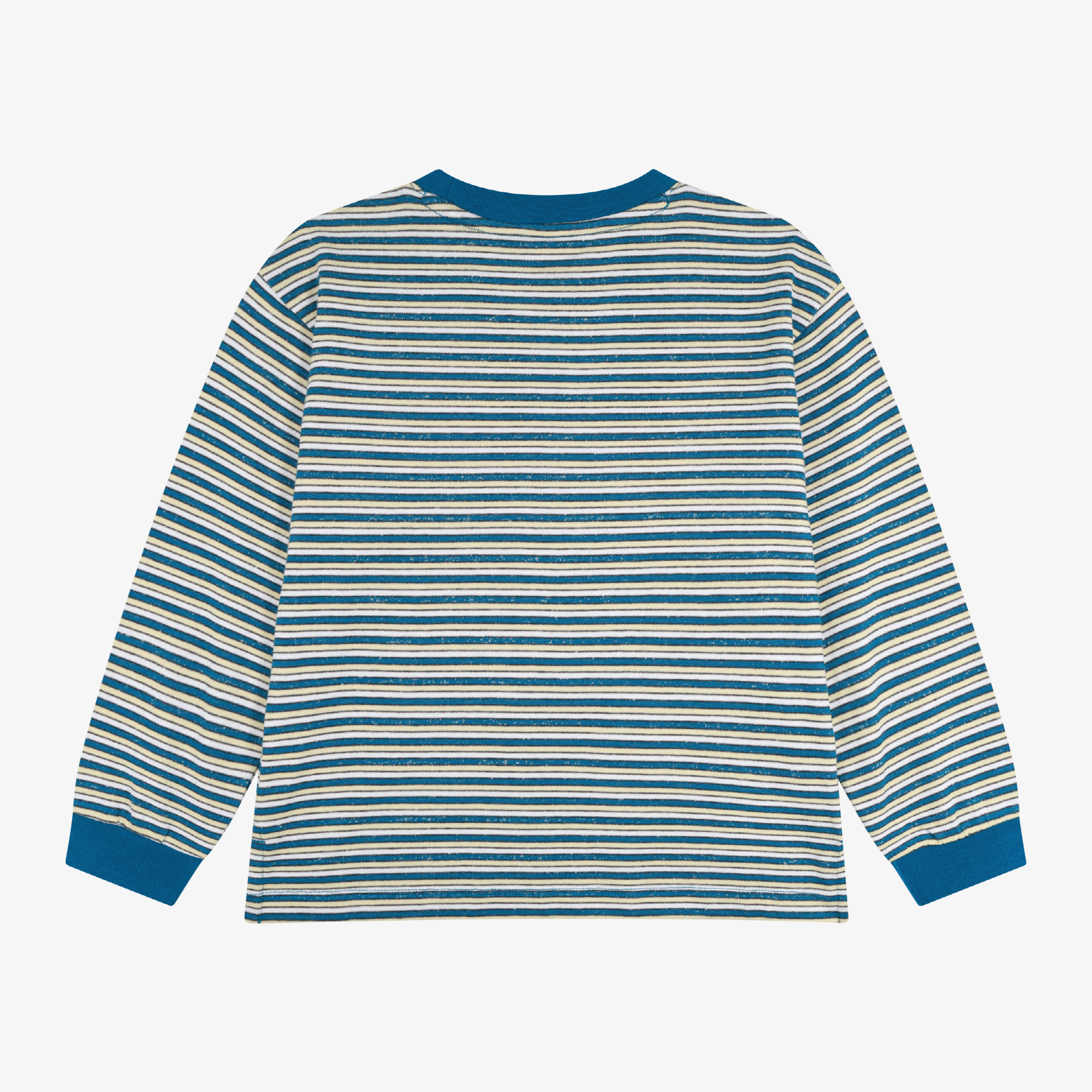 컬러풀한 멀티 스트라이프 원단으로 제작된 세미 루즈핏 긴팔 라운드 넥 티셔츠 입니다.