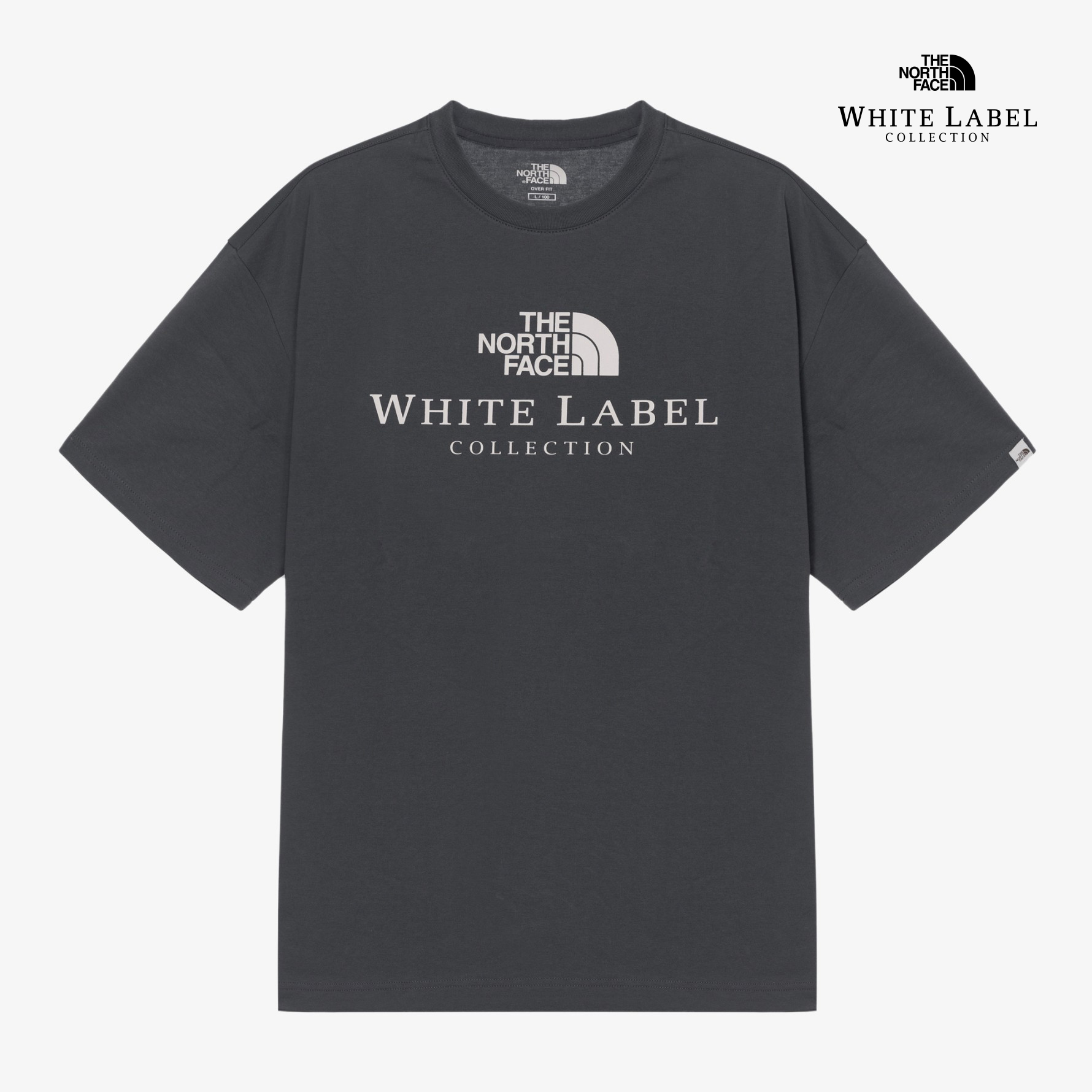 가슴 중앙에 화이트라벨 그래픽을 사용한 아이코닉한 티셔츠 제품입니다.