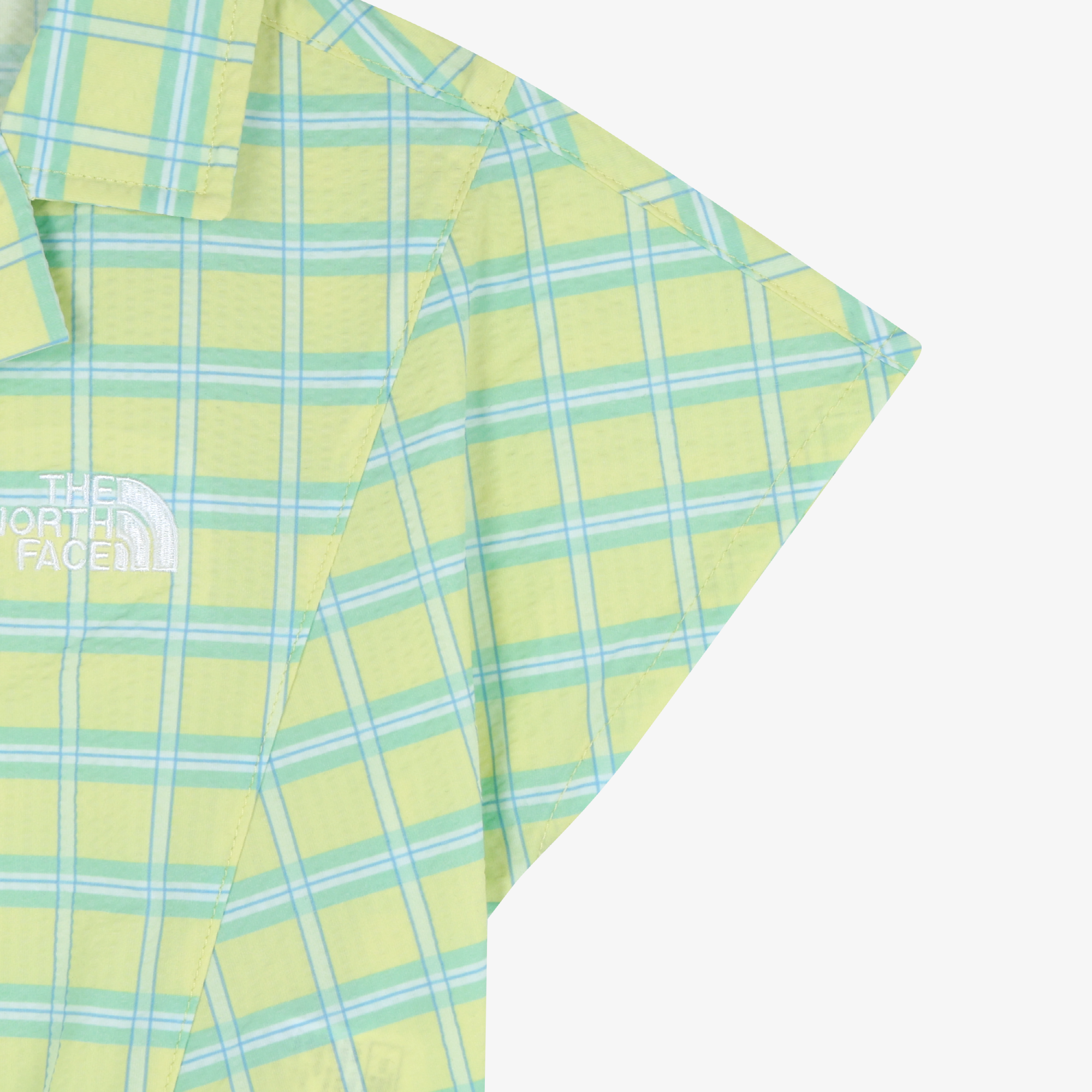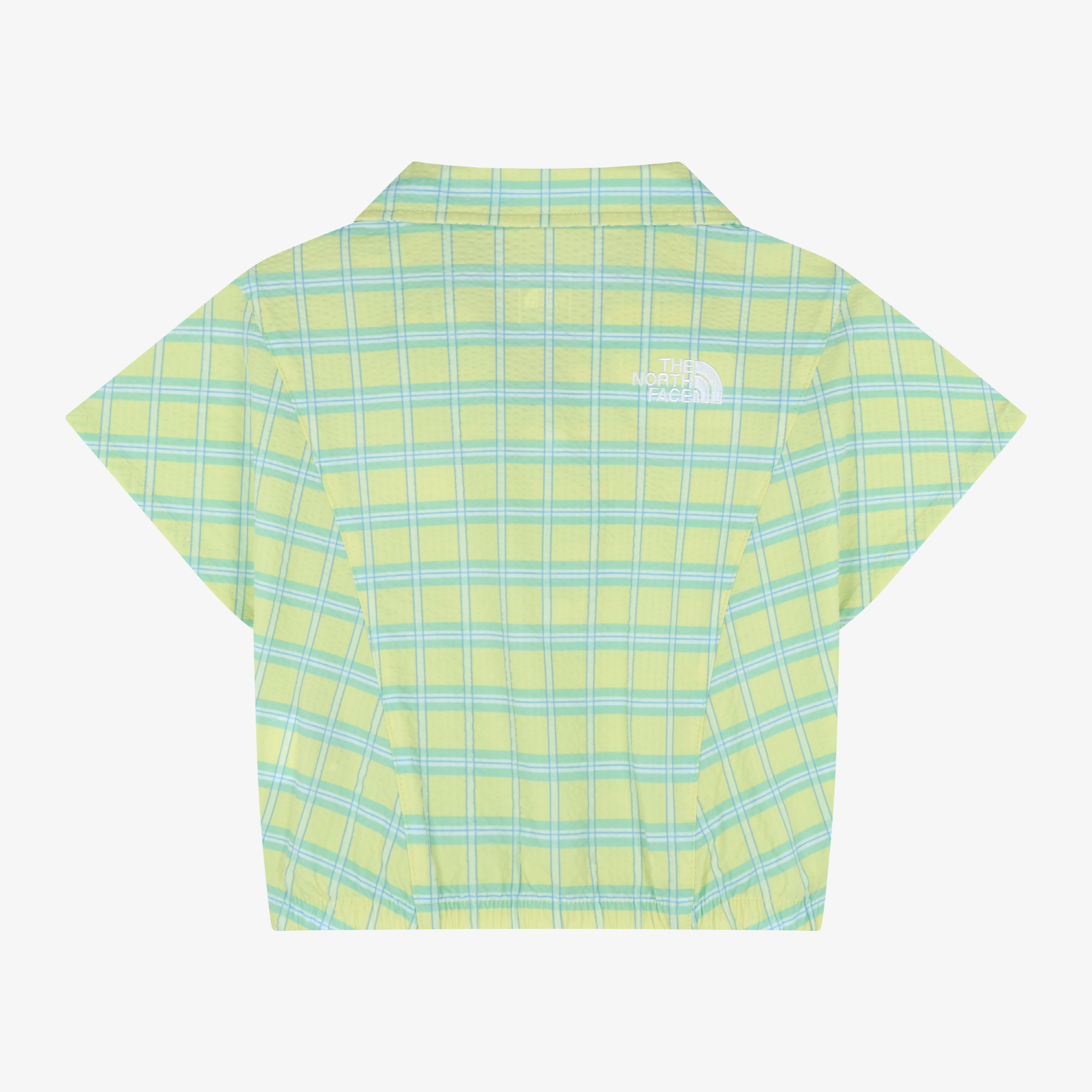 경쾌한 체크 패턴의 카라 반팔 셔츠와