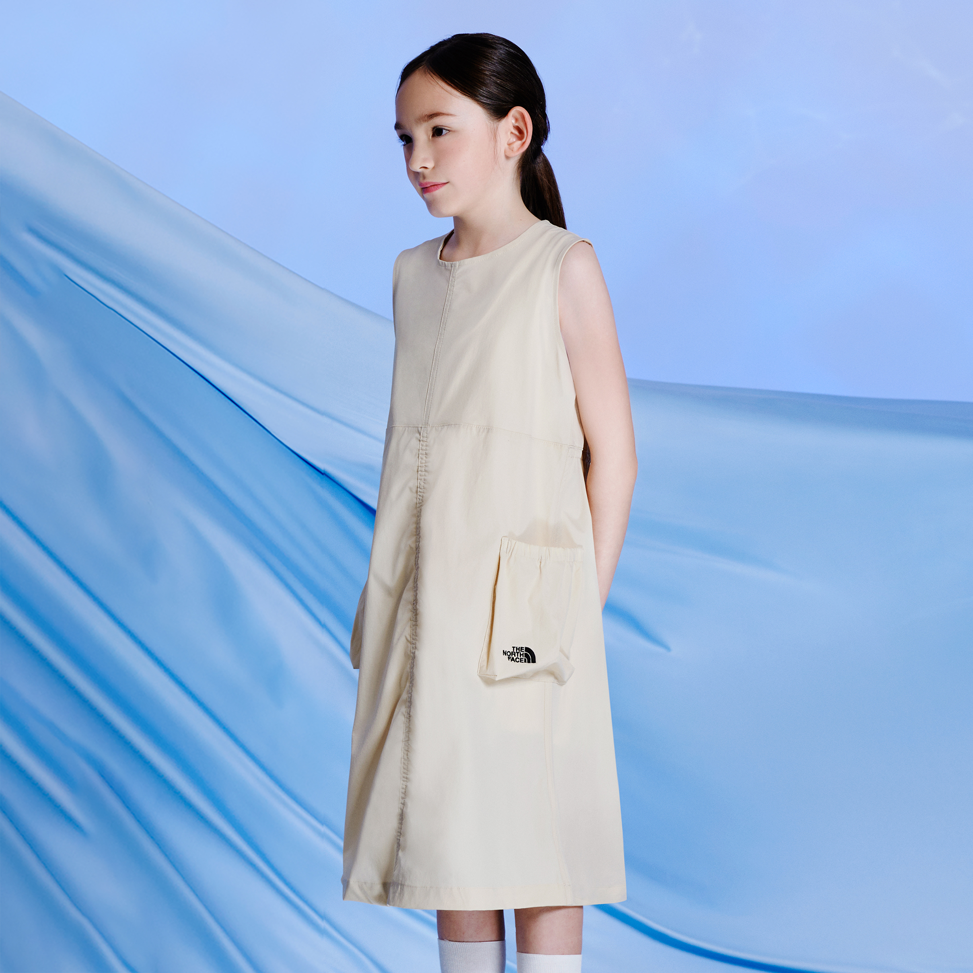 여아용 슬리브리스 원피스 제품으로 화사한 색상과 심플한 디자인에 절개선의 셔링과 사이드 입체 포켓으로 포인트를 준 제품입니다.
